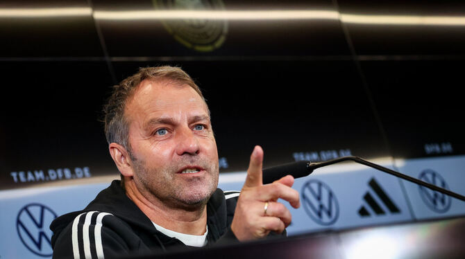 Offene Kommunikation seiner Personalplanungen: Bundestrainer Hansi Flick vor dem Spiel gegen Belgien. FOTO: CHARISIUS/DPA