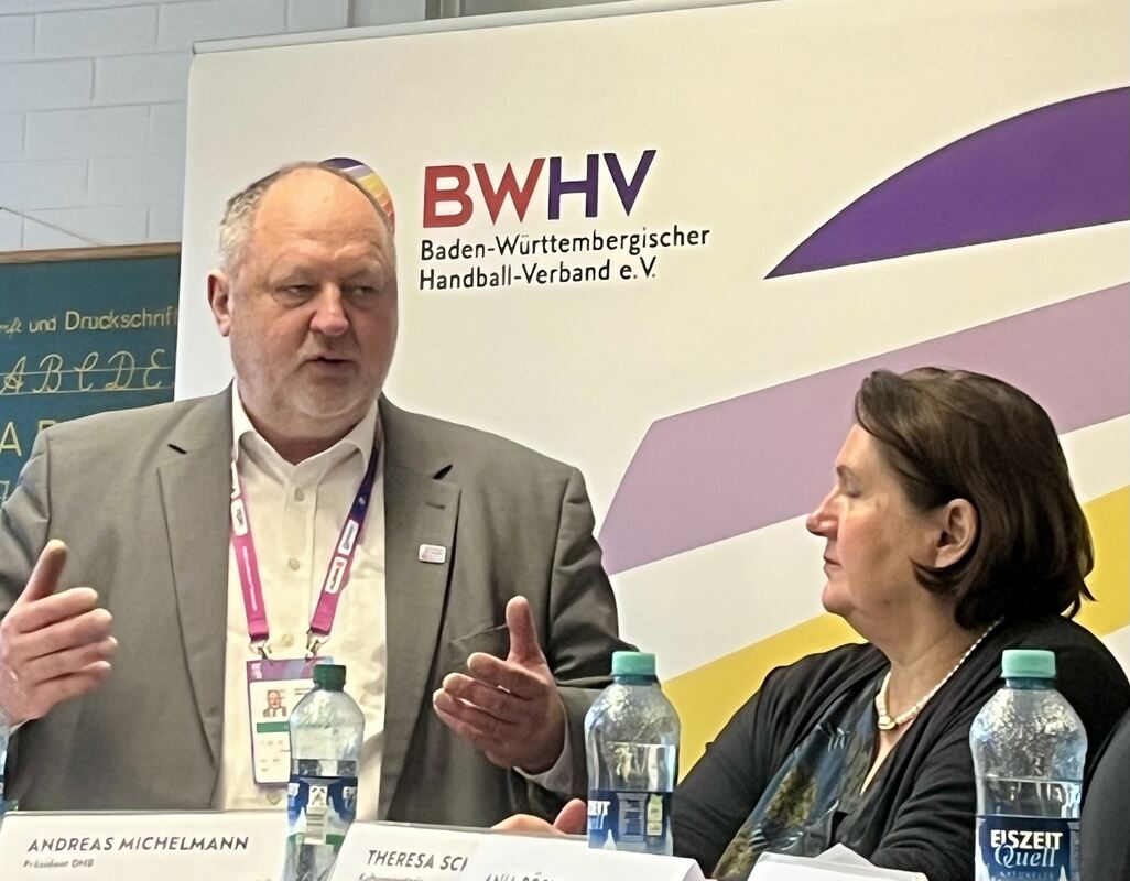 DHB-Präsident Michelmann im Gespräch mit der baden-württembergischen Kultusministerin Theresa Schopper