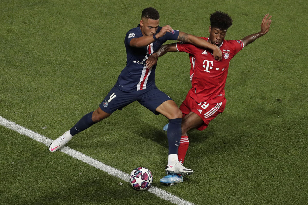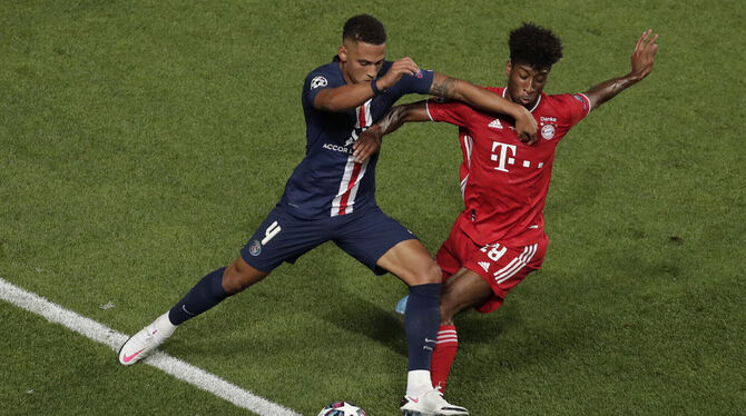 Szene aus dem Finale im August 2020: Thilo Kehrer (links) im Duell mit dem Münchner Torschützen Kingsley Coman. FOTO: FERNANDEZ/DPA