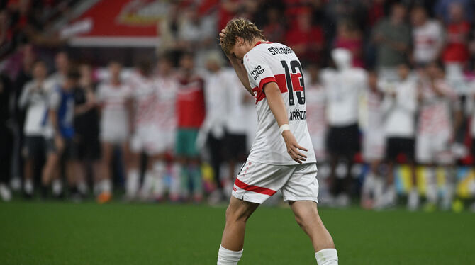 Wenig später stand der VfB-Neuzugang erneut im Mittelpunkt, als er von Bayer-Zukauf Terrier unsanft von den Beinen geholt wurde. Das von Schiedsrichter Tobias Stieler zu Recht mit einer Roten Karte geahndete Foul verschaffte den Gästen auch personell einen Vorteil. Das hätte sich beinahe noch vor der Pause bezahlt gemacht. Bei einem Lattentreffer von Millot (42.) und einen Pfostenschuss von Pascal Stenzel (45.+2) hatte der Meister reichlich Glück.