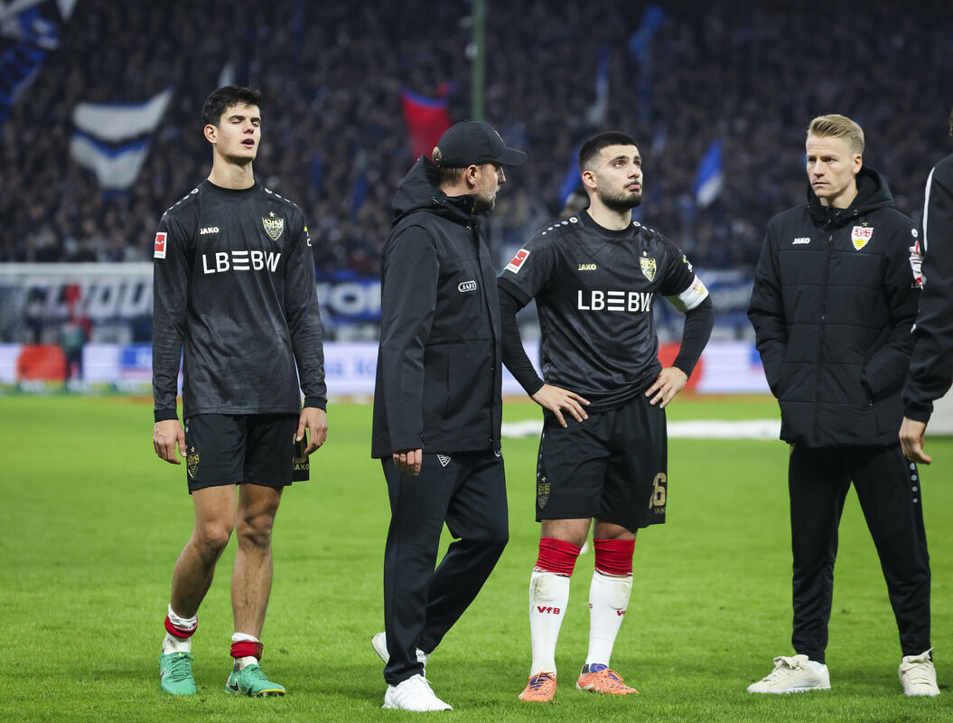 Einfach nur frustriert: Chema Andres, Trainer Sebastian Hoeneß, Deniz Undav und Chris Führich (von links).