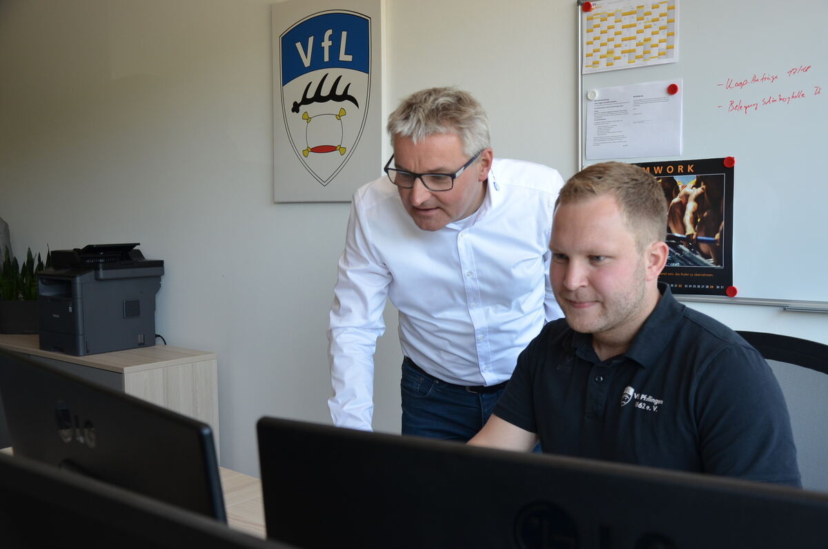 Archiv: Präsident Sven Schauenburg (links) und Geschäftsführer Tobias Stoll beim VfL Pfullingen. FOTO: SAUTTER