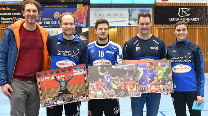 Nach dem Spiel wurden Trainer Daniel Brack (übernimmt Oppenweiler), die Spieler Simon Tölke (wird Torwart-Trainer beim VfL), Christian Jabot (wird Co-Trainer der Drittliga-Mannschaft) und Fabian Kehle (der Keeper sprang einige Spiele in die Bresche) sowie Physiotherapeutin Jessica Vöhringer verabschiedet. (GEA)