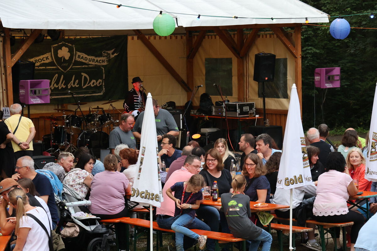 »Wir sind hier mit gut 130 Helfern am Start. Diesmal mit einheitlichem T-Shirt, denn wir sind ein Team«, betont Dorow. Sei es in der Küche mit dem Zubereiten von Schlachtplatte, Schwenksteaks und Grillspezialitäten oder in der Cocktailbar mit Loungebereich, in mehreren Schichten kamen sie zum Einsatz. »Hier gibt es super Essen, alles was man will«, versichert Karin Kiessling aus einer Nachbargemeinde. Und hier im Wald, das sei was Besonderes. »Es ist alles so liebevoll dekoriert und schön hergerichtet. Dann noch die Liveband, die sich gut anhört und das alles ohne Eintritt. Das ist schon was«, bemerkt sie. »Die Sommerfeste auf der Alb sind eben immer schön.«