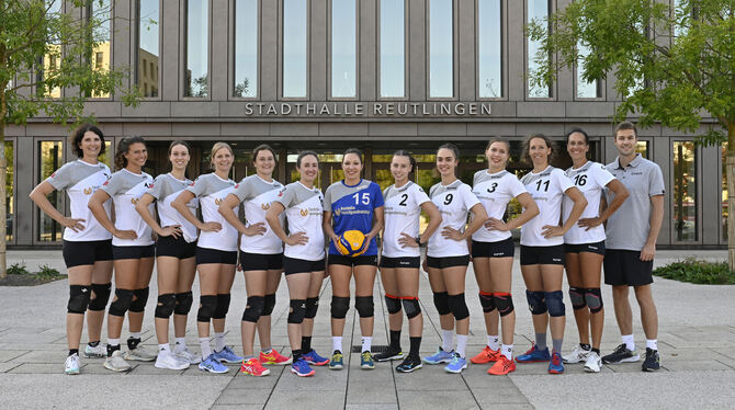 Das Oberliga-Team der TSG Reutlingen. Von links: Maria Münch, Julia Schröder, Aenne Bohl, Eva Woköck, Lea Reinhardt, Birgit Margenfeld, Sara Zöllner, Linda Paul, Sabrina Keller, Vanessa Gieske, Maximiliane Hattingen-Proebster, Nadine Hempke, Trainer Jan Grauel. Es fehlt Anne Weber.