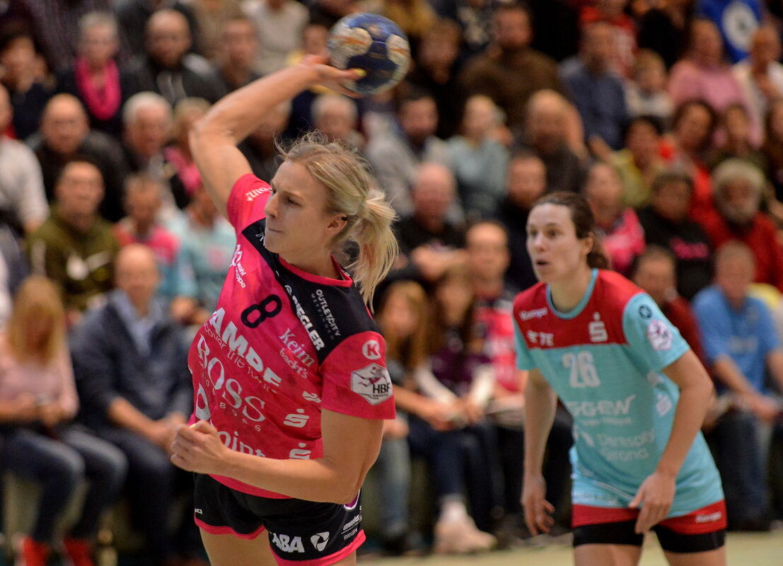 Verlässt die Bundesliga-Handballerinnen der TuS Metzingen: Rückraumspielerin Simone Petersen (links). FOTO: NIETHAMMER