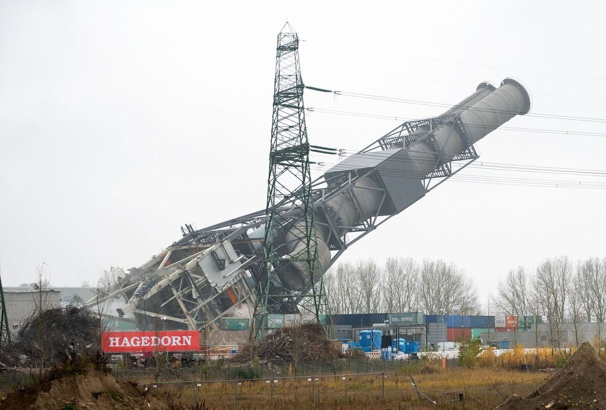 Sprengung Doppel-Schornstein Kohlekraftwerk Moorburg