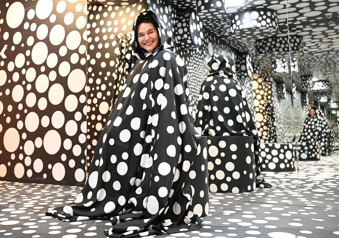 Ein Mann blickt auf die Ballons, die für die Macy's Thanksgiving Day Parade in New York vorbereitet werden.