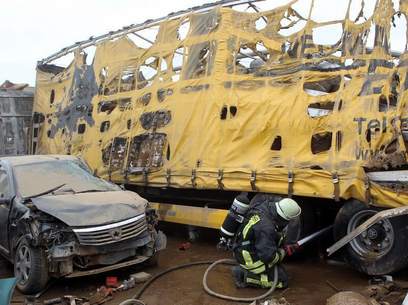 Feuerwehrleute sind auf der Autobahn A19 in der Nähe von Rostock im Einsatz.