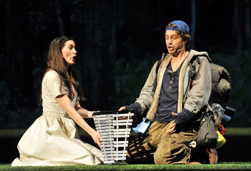 Die britische Sopranistin Kate Royal (Pamina) und Bariton Michael Nagy (Papageno) im Festspielhaus Baden-Baden. Foto: dpa
