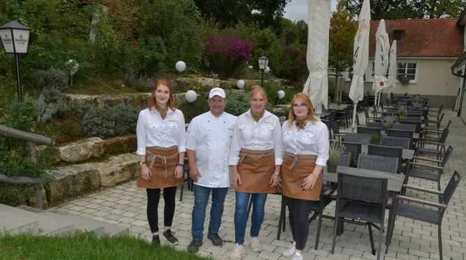 Nach jahrelanger Erfahrung in der Gastronomie hatten Daniel und Elke Seywald im April vergangenen Jahres die Gutsgaststätte übernommen. Mit fünf Festangestellten, darunter zwei Köche, und Aushilfen für Küche und Service sind sie für das Wohl der Gäste im Einsatz. Inzwischen sind auch ihre Töchter Laura und Lisa im Service. Die »Alteburg« bildet gerne junge Menschen in Küche und Service aus.