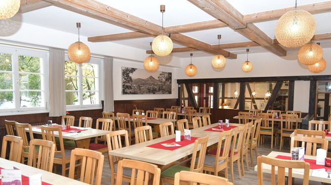 Während Daniel Seywald als Koch der Chef in der Küche ist, sorgt seine Frau mit ihrem Team dafür, dass sich die Gäste drinnen wie draußen wohlfühlen. An den gemütlich eingerichteten Gastraum mit rund 50 Sitzplätzen schließt sich die Terrasse an, die soeben für etwa 120 Gäste neu möbliert worden ist. Dort lässt es sich mitten im Grünen sitzen. Ein Spielplatz, Ziegen auf der angrenzenden Wiese und eine Voliere mit Greifvögeln sorgen für Kurzweil besonders unter kleinen Gästen. Gesellschaften können auch den Saal mit circa 60 Sitzplätzen oder das Jägerstüble für etwa 30 Personen mieten.