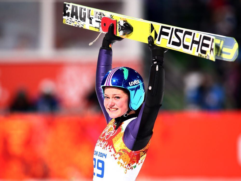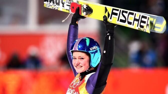 Die Baden-Württembergerin Carina Vogt gewinnt als erste Frau olympisches Gold beim Skispringen. FOTO: DPA