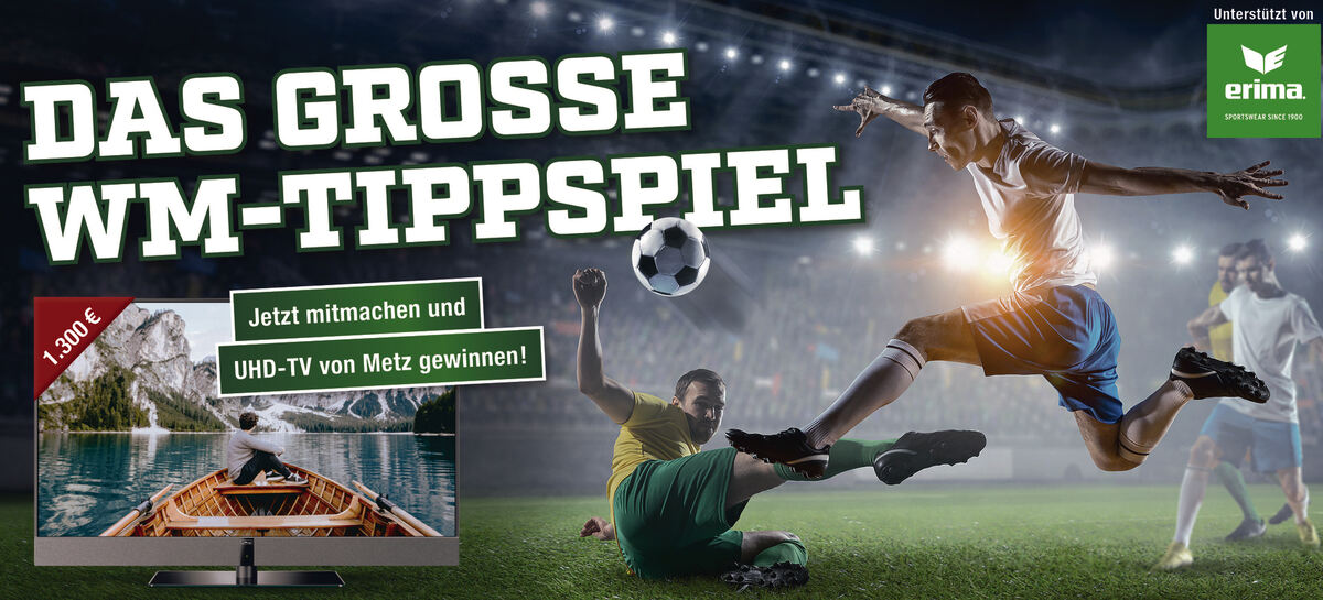 Die 55 besten Tipperinnen und Tipper kommen in den Genuss toller Preise. Hauptgewinn ist ein UHD-TV von Metz im Wert von 1 300 Euro. An den Zweitplatzierten geht ein 500-Euro-Gutschein von Fahrrad Fischer. Der Drittplatzierte erhält einen 200-Euro-Gutschein von Möbel Braun. Einen genauen Überblick über alle zu vergebenden Preise erhalten Sie auf der Startseite des Tippspiels. Eines ist dabei definitiv sicher: Mitmachen lohnt sich!