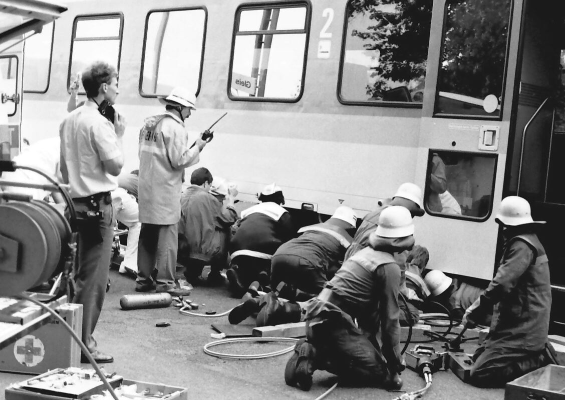 Max Göhner, Stadtbrandmeister der Mössinger Feuerwehr, leitete am 3. Juni 1991 einen dramatischen Einsatz: Im Bahnhof waren zwei Berufsschülerinnen auf einer Fußgängerfurt von einem Zug erfasst und mitgeschleift worden. Sie wurden zwischen Schienen und Rädern eingeklemmt, konnten mit dem Heben des 70 Tonnnen schweren Triebwagens gerettet werden. FOTO: MEYER
