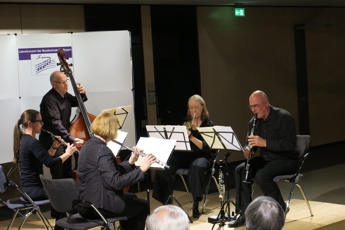 Bei der Soiree der in der Kreissparkasse von links: Dorothee Hirschmann, Oboe, Gangolf Merkle, Kontrabass, Silke Gustedt, Querflöte, Jane Wright, Horn, und Hartmut Fleck, Klarinette. FOTO: KNAUER