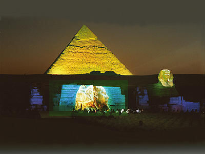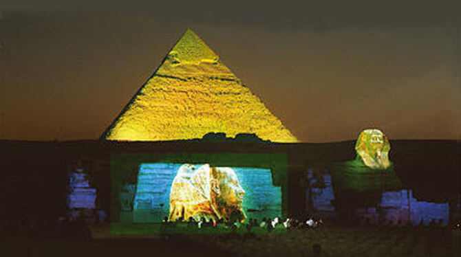 Die Pyramiden von Gizeh: Nacht für Nacht entführt eine pompöse Tonbild-Schau Touristen in eine längst vergangene Zeit. Hinter den magischen Bildern stehen Friedrich Förster und Sabine Weißinger - zwei Lichtkünstler aus Tübingen. Der Sonnengott gleitet auf einer Gondel über die Steinruinen des Tal-Tempels, Nofretete lüftet langsam ihren Schleier für Echnaton. Die Pyramiden auf dem Hochplateau von Gizeh in Ägypten erstrahlen mitten in der Nacht im außerirdischen Orange, Blau, Grün.