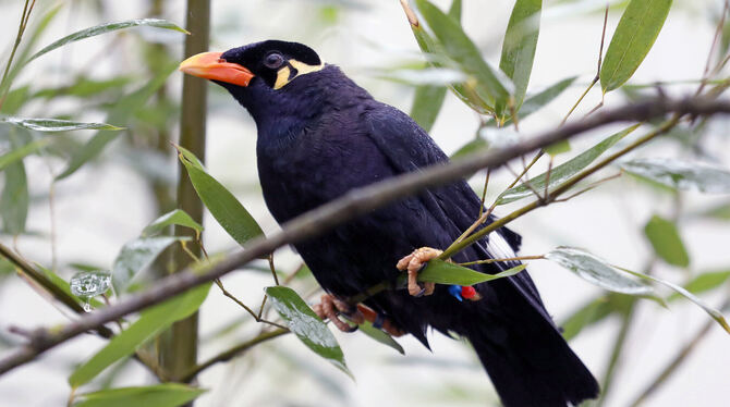 Die Beos sind los: Im Vogelpark sitzt der Beo »Bea« auf einem Bambus-Zweig