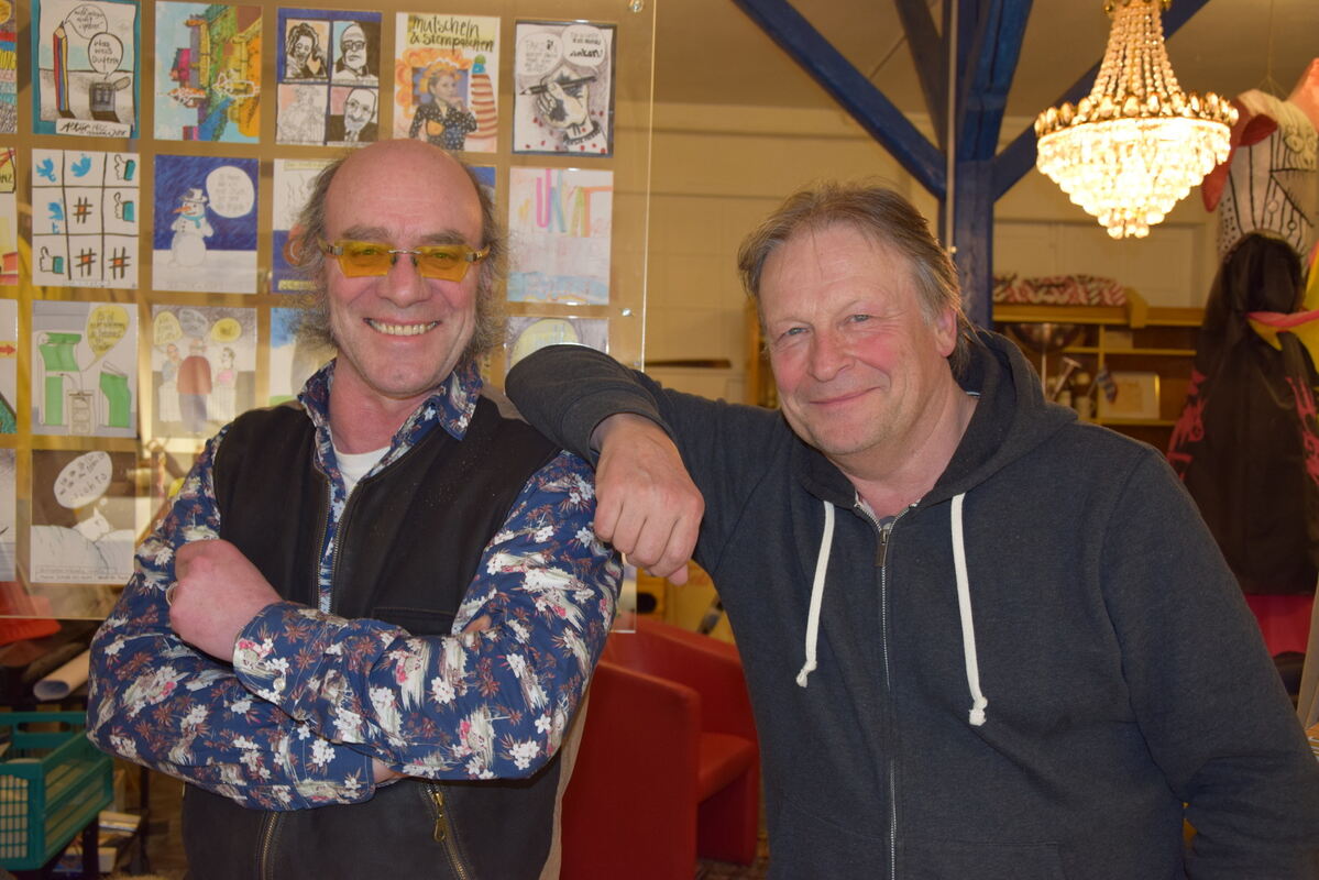 Matthias Knodel (links) und Helmut Bachschuster in Zivil im Pfullinger Künstlertreff …