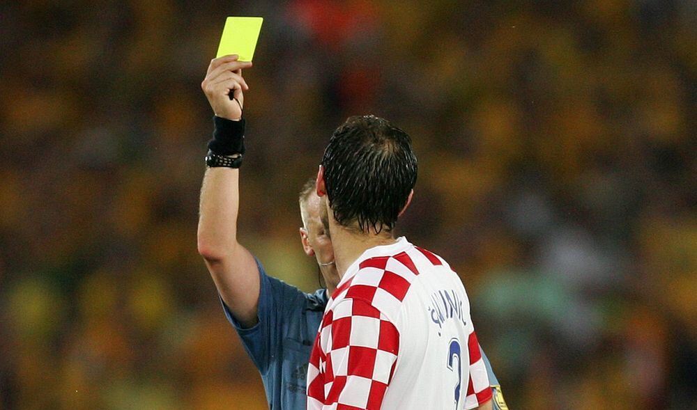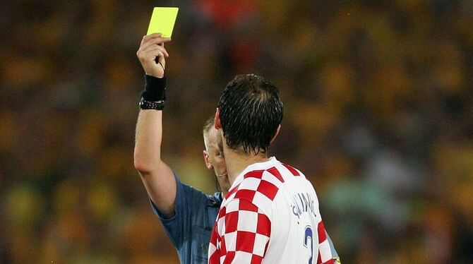 Josip Simunic sieht von Schiedsrichter Graham Poll drei Mal die gelbe Karte in einem Spiel. FOTO: WITTERS
