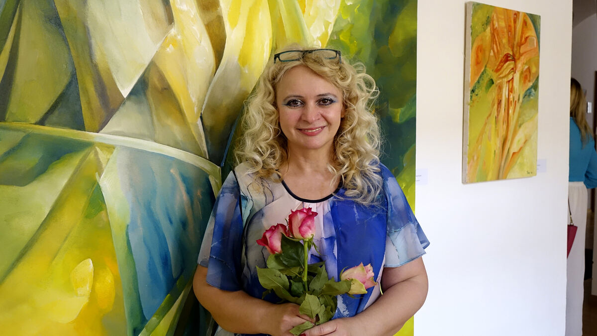 Temenuzhka Dikanska-Greber vor ihren ausdrucksstarken Bildern.