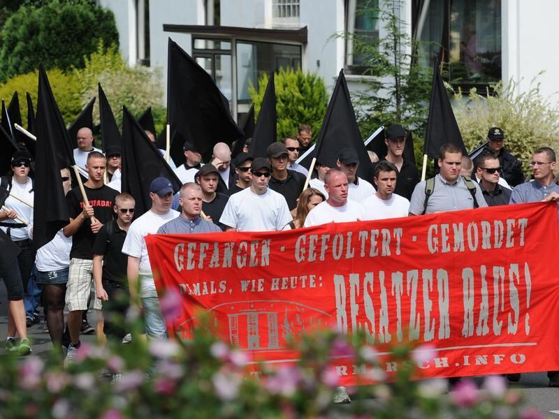 Rechtsextremisten in Bad Nenndorf (Archivbild). Das Verwaltungsgericht Hannover hat den erneuten Aufmarsch erlaubt, eine Gegendemonstration aber verboten.