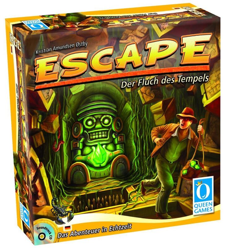 Spannung, Hektik, Herzklopfen - so lässt sich ein neues Spiel von Queen Games umschreiben. Schon kurz nach dem Erscheinen ist die Fangemeinde von »Escape - Der Fluch des Tempels« groß. »Noch mal, los, noch mal!«, ist nicht selten zu hören, wenn das Spiel nach zehn Minuten zu Ende ist. In dieser Zeit geht es darum, mittels Würfeln diverse Aufgaben zu erfüllen und aus einem Tempel zu entkommen, bevor er einstürzt. Die Spieler kommen sich insbesondere dann als Abenteurer vor, wenn statt Sanduhr ein CD-Player zum Einsatz kommt: Mit zum Spiel gehört ein packender Soundtrack, der bedrohliche Situationen ankündigt.