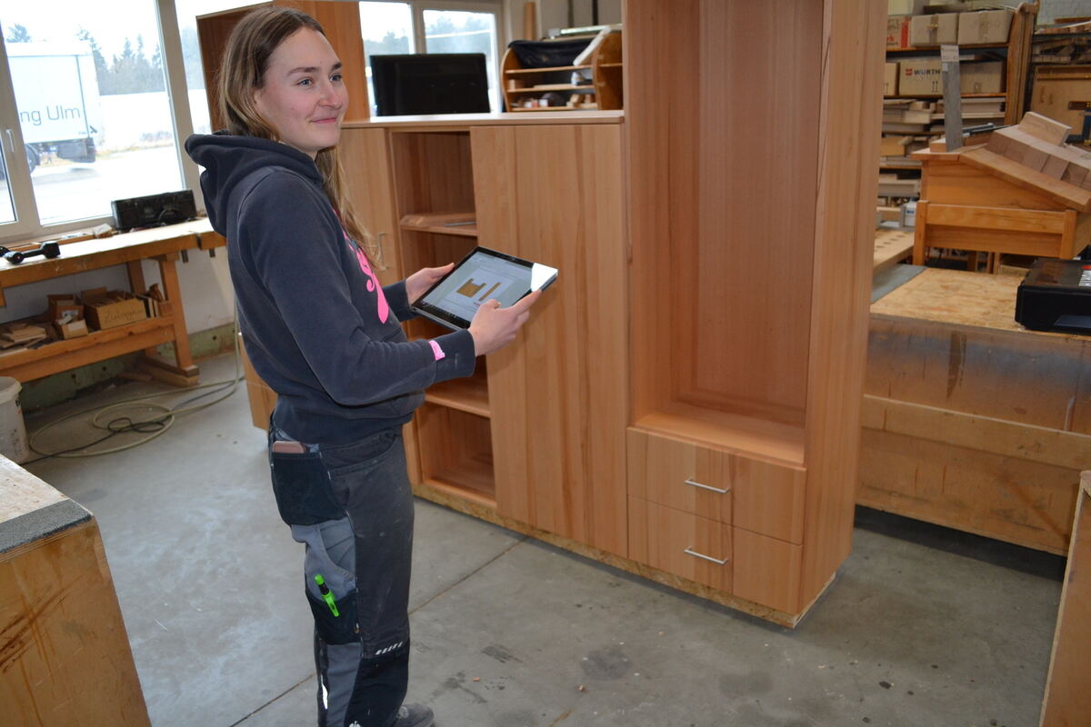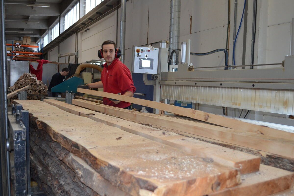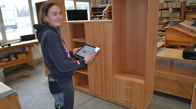 Der Individualität sind kaum Grenzen gesetzt. Einmal musste ein Kunde einen großen Kirschbaum fällen und wollte ihm ein zweites Leben als Möbelstück schenken. Nachdem Freudemann ihn begutachtet und festgestellt hatte, dass der Stamm gerade gewachsen und gesund war, machte er ihn zunächst zu Leimholzplatten, dann zu einem Tisch. »Das ist dann etwas wirklich Einmaliges«, stellt Freudemann fest. Kunden sind immer gerne eingeladen, ihr Tischbild beim Legen selbst zu gestalten. Was ihn antreibt, sei die Freude am Holz und am Gestalten. Bereitwillig lässt sich Freudemann auch auf die Ideen von Designern ein und entwickelt Prototypen. Manche seiner Ideen – das Bröselbrett oder der Brotkasten aus Zirbenholz – haben es in Serie geschafft. Aus Freude am gemeinsamen Entwickeln ist beispielsweise ein Besprechungstisch für eine Zimmerei entstanden, mit einer Mulde für Strom- und USB Anschlüsse in der Mitte. Oder die Idee eines Bekannten zu einer Hundebox fürs Wohnzimmer – für den Fall, wenn Besucher mit Angst vor Hunden kommen oder ungestüme Kinder, vor denen sich der Hund lieber zurückzieht. Inzwischen ist die Idee soweit gediehen, dass Modelle mit Schiebetür geplant werden. »Gehen tut alles!«, sagt Freudemann. Dabei sind die CAD gestützten Zeichen- und Planungstools sehr hilfreich, mit denen Gesellin Hanna neue Ideen schnell veranschaulichen kann.