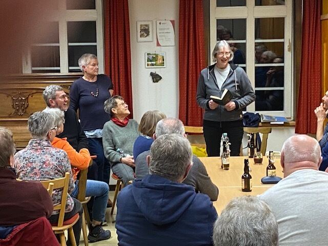 Beim ersten Mundartstammtisch des Jahres war der Albvereinsraum im Eninger Spital mit fröhlichen Gästen gut gefüllt. FOTO: VEREIN