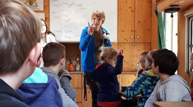 Sabine Reußink erklärt, wie das Mikroskop bedient wird. FOTO: SOPHIA MITTELBACH