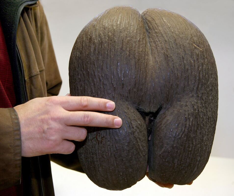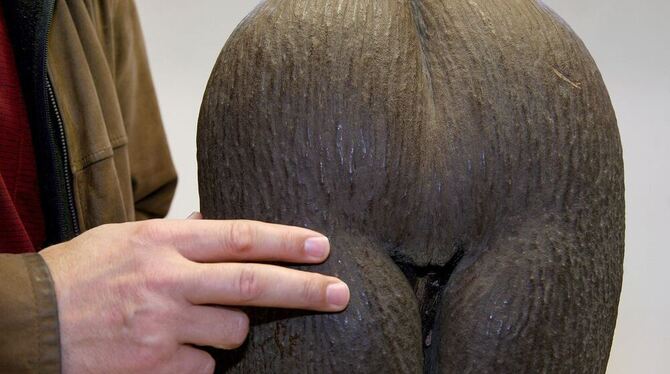 Der größte Samen der Welt, der Samen der Seyschellenpalme (Lodoicea maldivica) in der Samenbank im Botanischen Garten in Berlin. FOTO: DPA