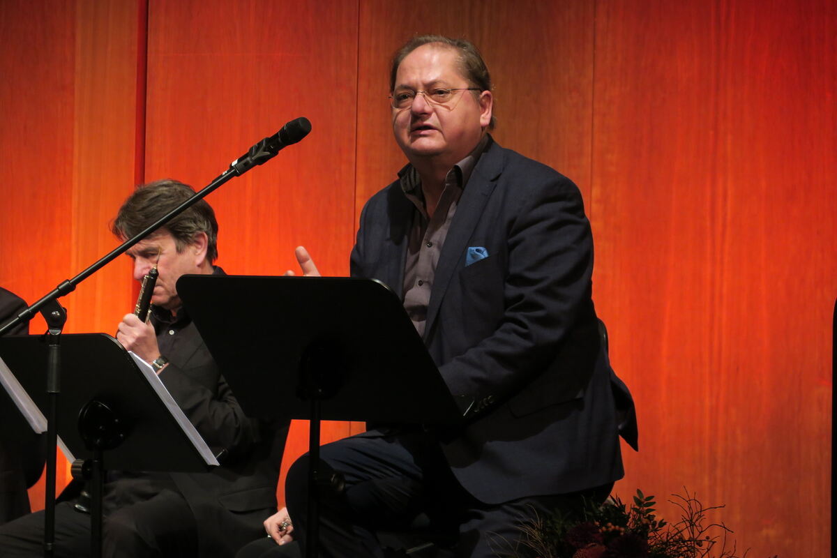 Jürgen Tarrach als gewitzter Märchenerzähler in der Stadthalle. FOTO: KNAUER