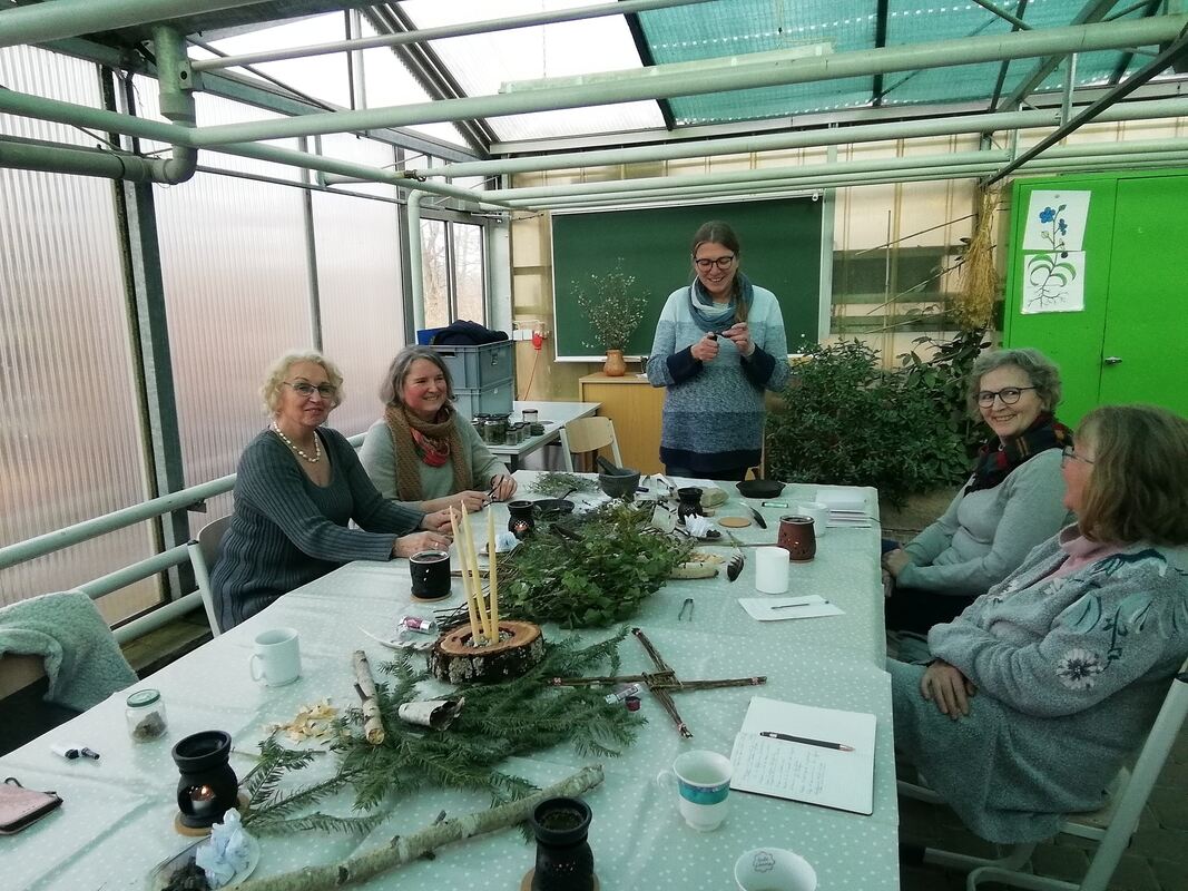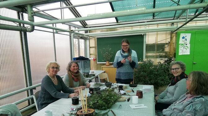 Reutlingen.13 Uhr. Das Gewächswachs auf dem Areal des IB Bildungscampus verwandelt sich einmal mehr in das Café QuerBeet. Die Kräuterpädagogin Daniela Häberle dekoriert den langen Tisch für die Veranstaltung »Räuchern mit heimischen Pflanzen« . Inzwischen bereitet Gartenbaulehrerin Tanja Schütz zwei Tees aus eigenem Kräuteranbau zu: Der einen Thermoskanne entströmt ein feiner Zitronengrasgeruch; die andere enthält die optimale Mischung für die kalte Jahreszeit: Ingwer, Zitrone und Honig stärken die körpereigenen Abwehrkräfte. 90 Minuten später. In den Gewächshäusern duftet es, als ob eine ganze Räuchermännchen Brigade Einzug gehalten hätte. Daniela Häberle kokelt einen Bund Mariengras am unteren Stengelende an – ein uraltes Reinigungsritual, das sie einmal im Monat anwende, erklärt sie. Die kleine Frauengruppe ist im angeregten Austausch und strahlt eine große Harmonie aus.