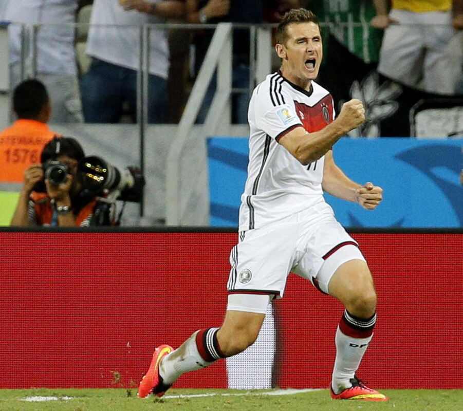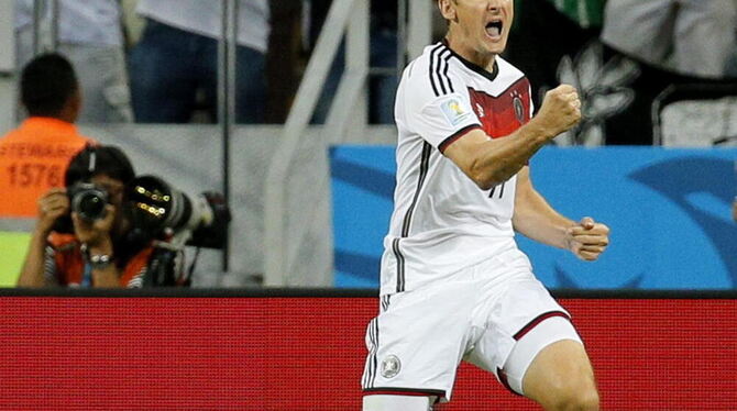 Miroslav Klose jubelt über seinen Treffer zum 2:2. Foto: DPA