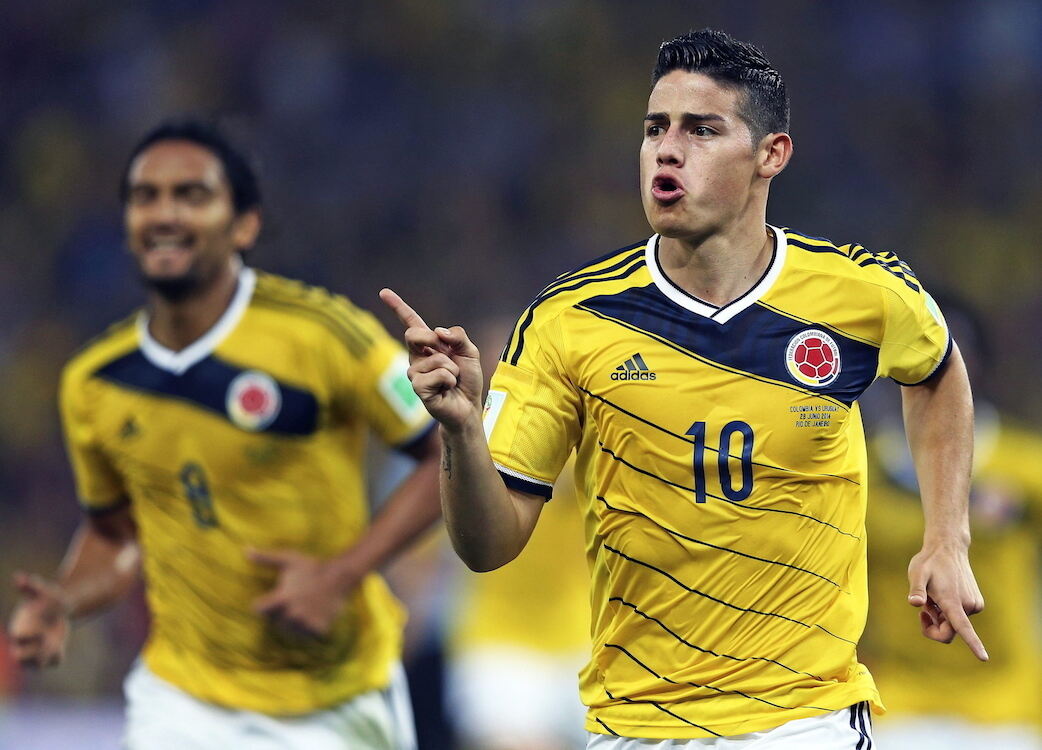 James Rodríguez schießt Kolumbien mit seinen zwei Treffern gegen Uruguay ins WM-Viertelfinale. FOTO: DPA