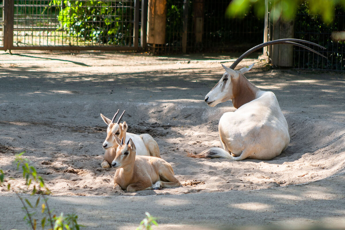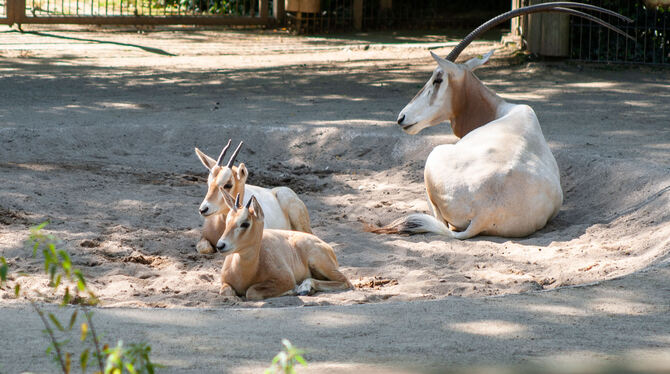 STUTTGART. Anubis und Seth heißen die beiden kleinen Säbelantilopen, die seit jetzt im Außengehege der Wilhelma Stuttgart leben. Säbelantilopen kommen aus Nordafrika. Dort zogen sie früher in große Herden durch die Wüste. Inzwischen ist die Art aber vom Aussterben bedroht. Daher freuen sich die Tierpfleger in der Wilhelma sehr über die beiden Böcke, die im Mai geboren wurden. Wenn sie groß sind, werden sie mal ein stolzes Geweih tragen das aussieht wie ein Säbel. (GEA)