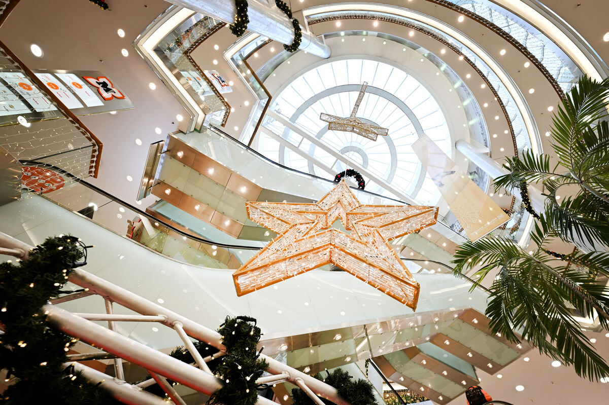 Funkelnde Sterne und Tannengrün über vier Etagen schaffen in der Müller Galerie eine glanzvolle Atmosphäre. Foto: PR