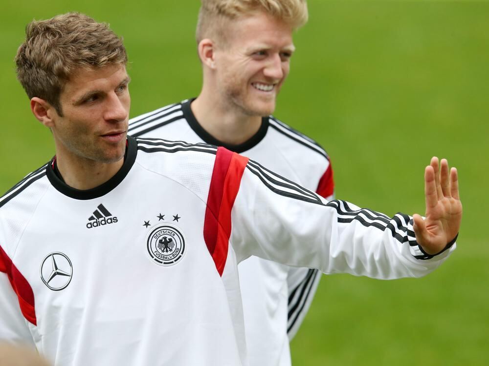 Thomas Müller ist immer für einen Spaß gut. Da haben Teamkollegen wie André Schürrle (rechts) regelmäßig etwas zu lachen.FOTO: WITTERS