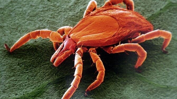 Eine Zecke unterm Mokroskop: Auch der der gemeine Holzbock so klein ist, kann er gefährliche Krankheiten FSME oder Borreliose übertragen.