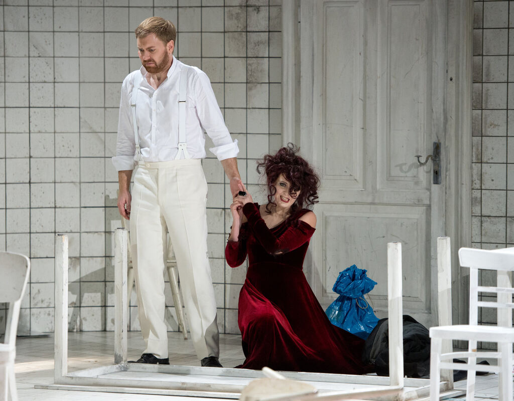 Medea (Cornelia Ptassek) will ihren Mann Iason (Sebastian Kohlhepp) nicht einfach so ziehen lassen. FOTO: DPA