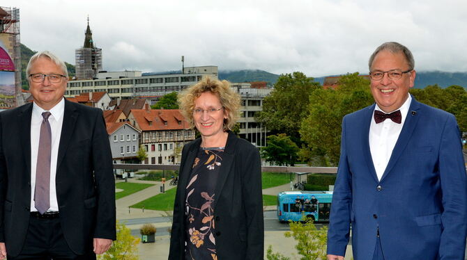 Angela Weiskopf, 1963 in Essen geboren, hat ihr Amt als Reutlinger Baubürgermeisterin am 1. August dieses Jahres angetreten. Zuvor war sie zuletzt seit 2017 Abteilungsleiterin für die städtebauliche Planung Neckar in Stuttgart. Weiskopf habe die Stadt und ihre Stadtbezirke ausgiebig erkundet, hob Thomas Keck hervor, um herauszufinden, ob »Angela Weiskopf und Reutlingen zusammenpassen«. Mittlerweile habe er sie »gut genug kennengelernt, um einschätzen zu können: Auch für unsere Stadt Reutlingen passt Angela Weiskopf«.