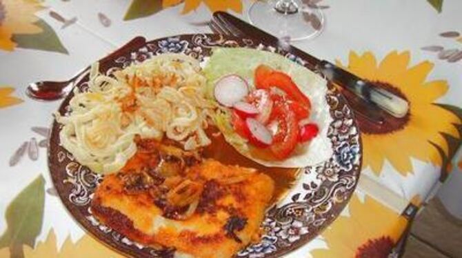 Simone Neubrander empfiehlt: Cordon-Bleu mit Spätzchen und gemischtem Salat.
