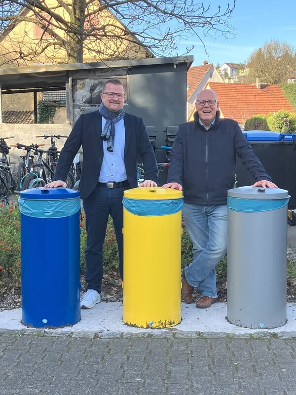 PFULLINGEN. Vor Kurzem versammelten sich gut 100 Schülerinnen und Schüler sowie einige Lehrkräfte auf dem Pausenhof des Pfullinger Friedrich-Schiller-Gymnasiums, um während ihrer Pause zweier kurzer Ansprachen zu lauschen, für die eigens eine Bühne zwischen A- und B-Bau aufgestellt war. Darauf standen Bürgermeister Stefan Wörner und Andreas Reinert, Lehrer am Gymnasium und als Teil des Schulleitungsteams für die dortige Nachhaltigkeits-AG zuständig. Und um deren jüngst fertiggestelltes Projekt ging es: Der Start des neuen Mülltrennungskonzepts wurde feierlich begangen.