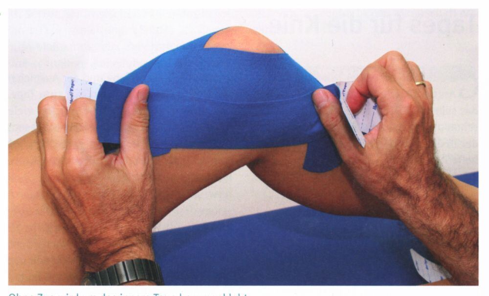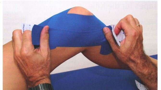 Ein Knie wird getapt: Erkrankungen des Bewegungsapparates sind ein typisches Einsatzgebiet der Methode. Foto: Trias Verlag
