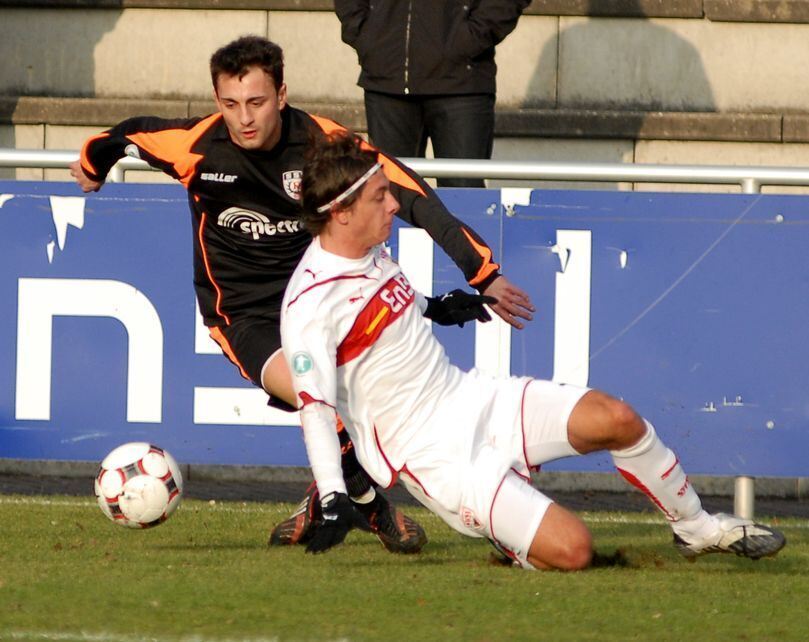 Reutlingens Anton Makarenko (links) im Zweikampf mit dem in Oferdingen wohnenden Sven Schimmel. FOTO: THOMYS