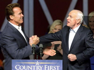 Wahlkampf miit dem Ex-Terminator: Arnold Schwarzenegger unterstützt John McCain.