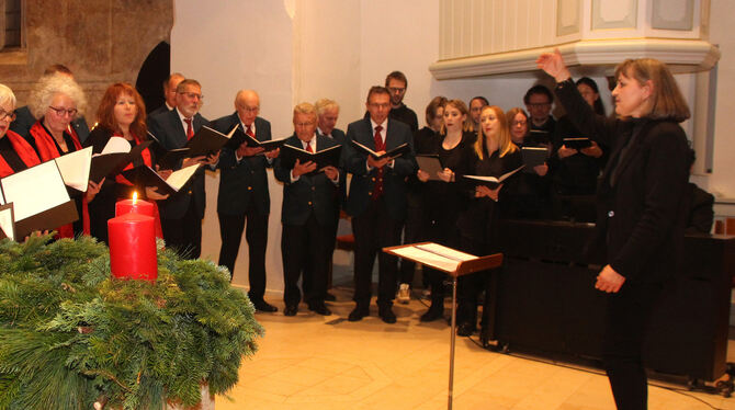 Der Sängerbund Lichtenstein begeistert die Zuhörer beim traditionellen Adventskonzert in der Johanneskirche. FOTO: LEIPPERT