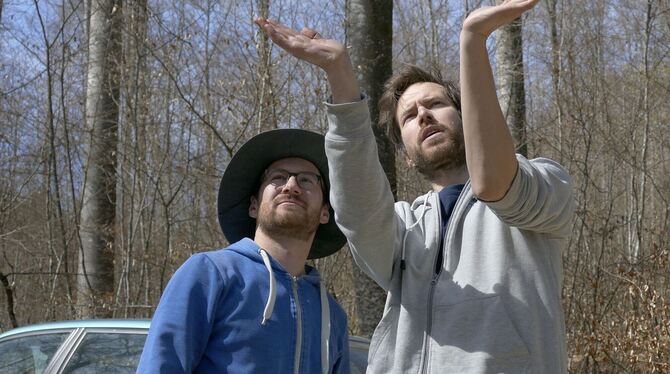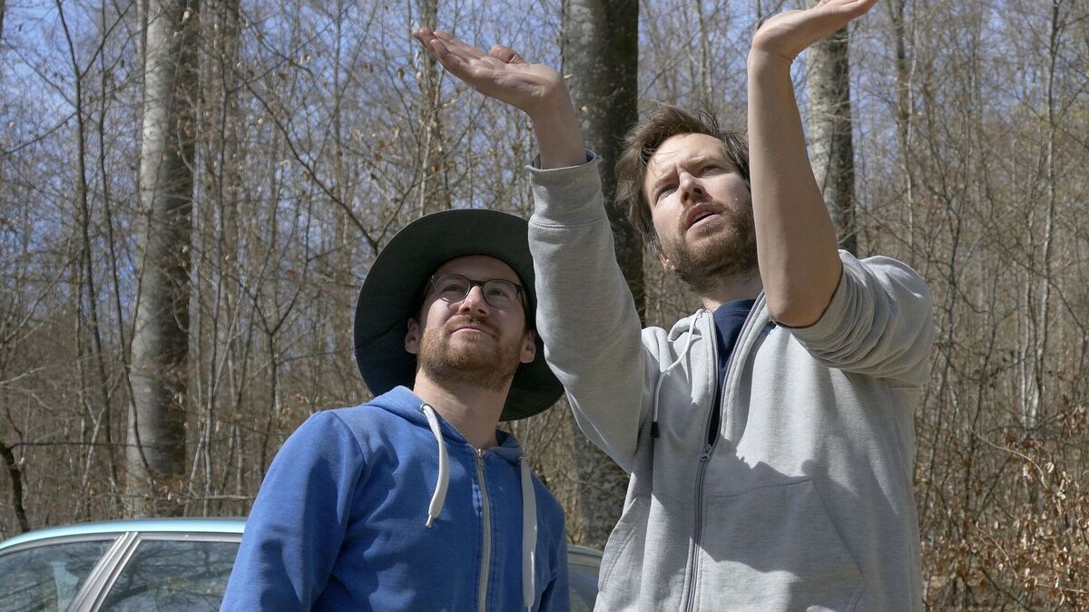 Patrick Kohl und Benjamin Rutschmann forschen zu wilden Honigbienen im Wald.