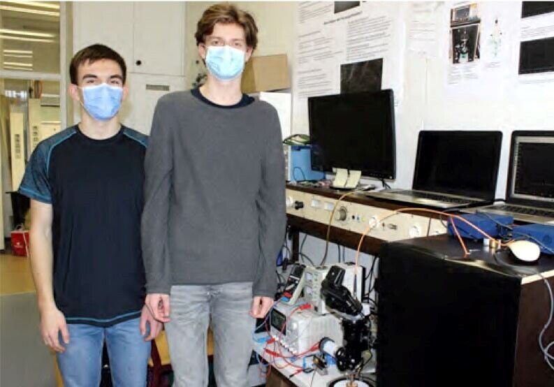Jakob Ebert (16) und Jonas Coconelli (17) vom Dietrich-Bonhoeffer-Gymnasium in Metzingen erzielten mit ihrem Projekt »Aufbau und Erforschung eines Mikro-Funkenspektrometers auf Basis eines Schulmikroskops« einen herausragenden Regionalsieg im Fachbereich Physik.
