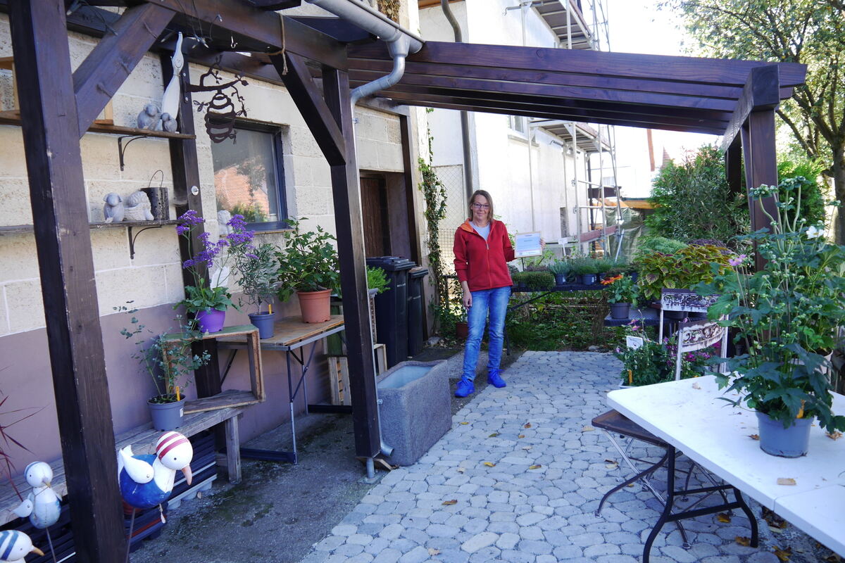 Dank der finanziellen Unterstützung über das Regionalbudget für Kleinprojekte von Leader Mittlere Alb ist das Wiesenstück zu einer befestigten Terrasse umgestaltet und mit einer Holzpergola ergänzt worden. Die vergrößerte Freiland-Verkaufsfläche ermöglicht nun ein breiteres Produktsortiment.